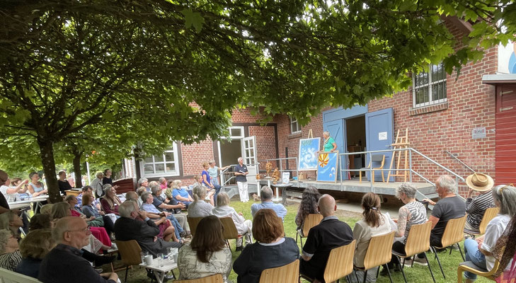 Wir, die Gastgeber Ralf und Andrea Verdieck hatten die Veranstaltung mit großer Hingabe organisiert und Ralf moderierte. Er führte gekonnt durch das Programm und sorgte dafür, dass die Künstler und Künstlerinnen im Mittelpunkt standen und Jede(r) ihre/seine Neuschöpfungen präsentieren konnte.