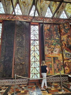 Alle Mitglieder unserer Gruppe erhielten eine detailreiche Führung mit viel Insiderwissen von Heike persönlich. Die im Museum dargestellten Werke beeindrucken zutiefst, allein schon auf Grund der Größe und der Farbigkeit. Und das Gelände mit seinen Skulpturen und den angelegten Bereichen für landwirtschaftliche Nutzung und Entspannung/Meditation ist allein schon einen Besuch wert.
