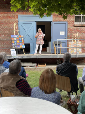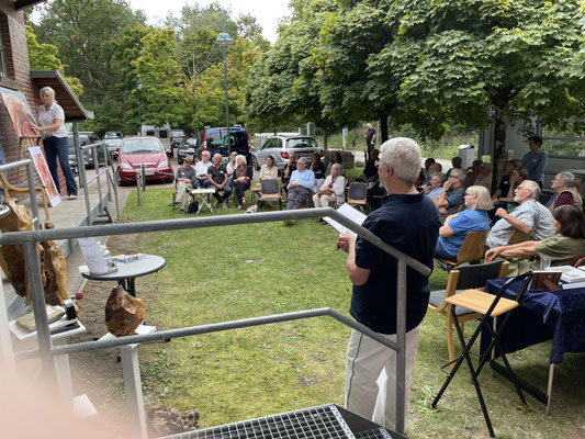 Andreas beliebter Kuchen, Kaffee, Kaltgetränke standen wieder für die ausstellenden Künstler bereit , und Andrea war dann vor Ort auch noch eine charmante Moderatorin des Geschehens.