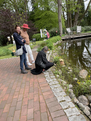 Die Bilder wurden in Form eines Vortrags im Haus der Fantasie präsentiert, und es trat mehrfach die Situation ein, dass alle Plätze besetzt waren. Zum Glück hatten wir auch einige Darstellungen ausdrucken lassen und als Bilder im Garten aufgestellt, und unserer Gastausstellerin Inge Paulsen begeisterte mit ihren Keramikfiguren unsere Besucher zusätzlich auf eine ganz andere Weise. Andrea war die wunderbar charmante Führerin dieser speziellen Ausstellung. Vielen Dank!